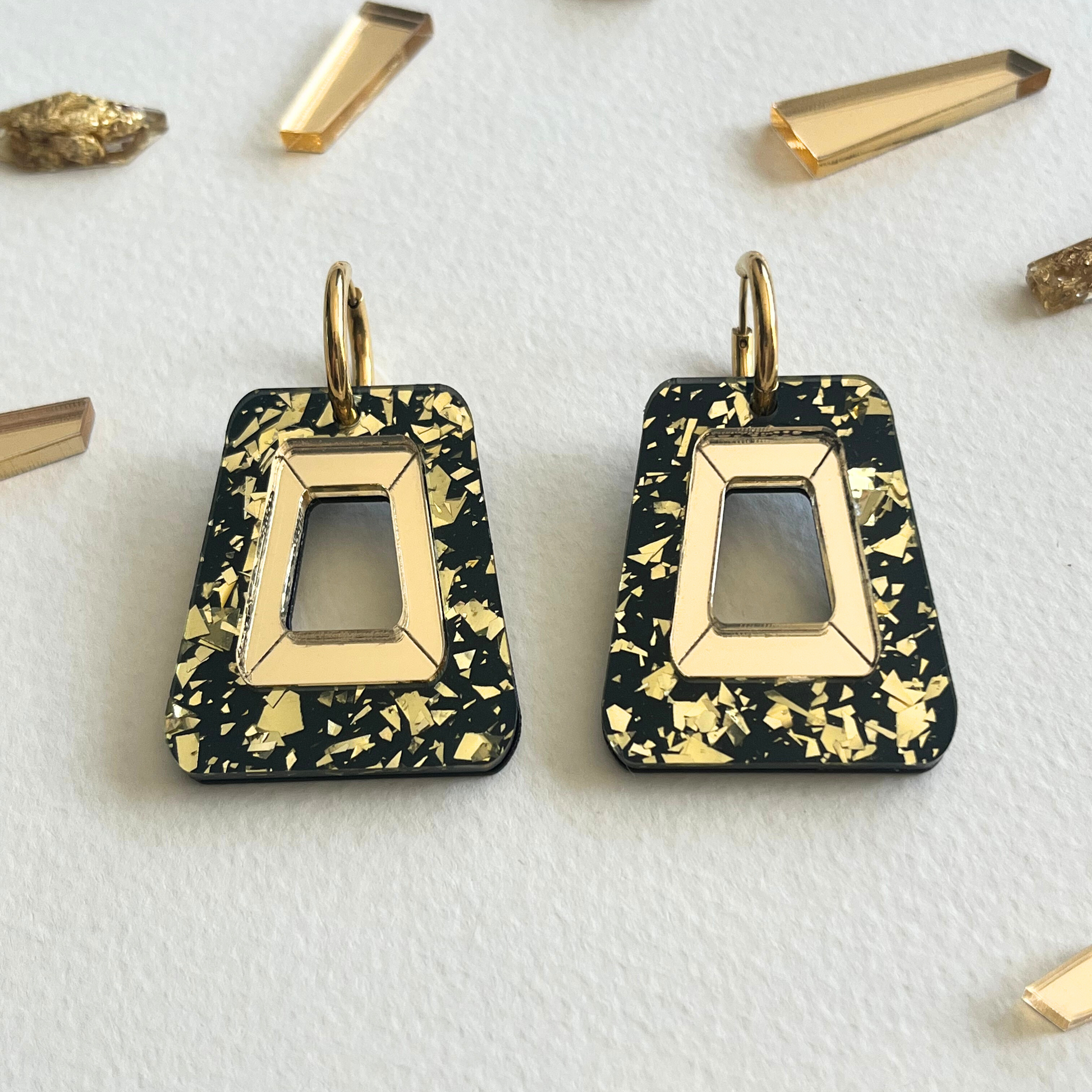 Couleur: Noir pailleté dorée, miroir doré